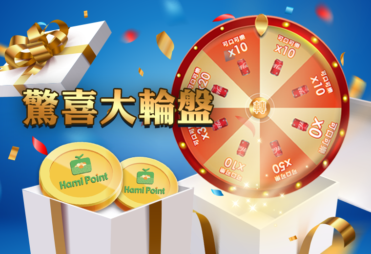 扣Hami Point 100點,即可玩1次轉輪盤,獎品數量有限送完為止